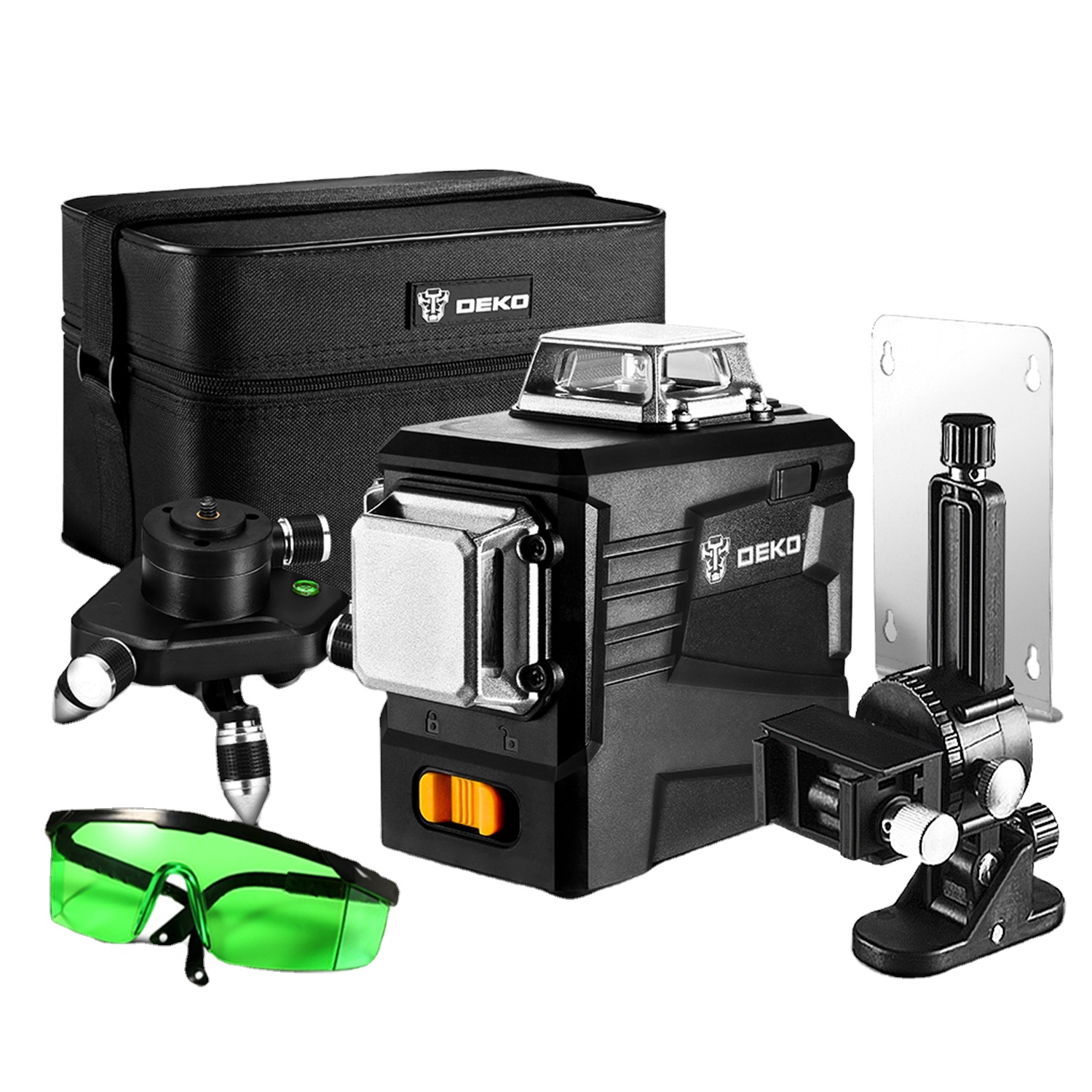 DEKO DKLL12TDP02-S3 البسيطة الأخضر الليزر مستوى أفقي وعمودي 12 خطوط 3D الذاتي الإستواء 360 عالية الدقة 520nm الطول الموجي