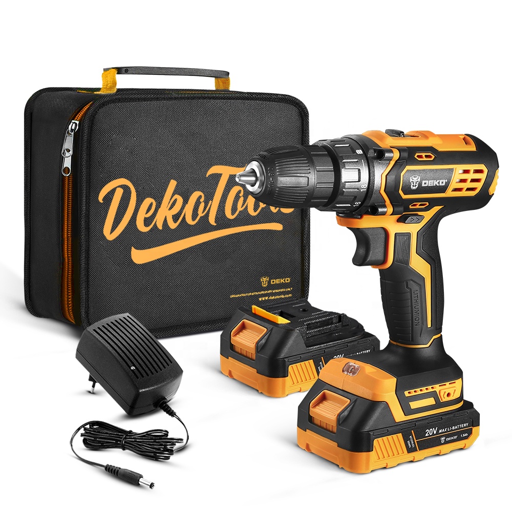 DEKO DKBL20XP01-S2 20V Professional-Grade Cordless Impact Drill Brushless DRILL-120N Motor 2 Batteries and Bag