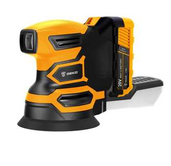 DEKO DKOS20Q1Y-S1 Gerinda ORBIT Acak, Alat Listrik ORBIT Acak Tanpa Kabel 20V 8000-13000opm 125Mm 1500MAh