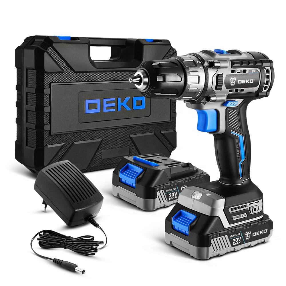 DEKO DKBL20XP01-S2 için profesyonel dereceli 20V akülü darbeli matkap fırçasız DRILL-120N Motor 2 piller çanta DIY için